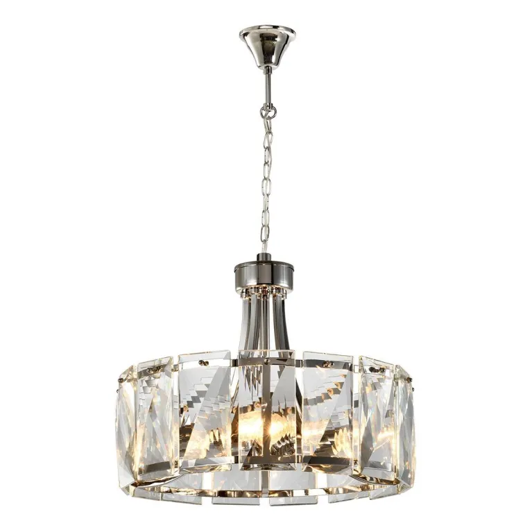 Люстра оснащена пятью лампами, что обеспечивает яркое и равномерное освещение пространства. Она идеально подходит для гостиной, столовой или спальни, добавляя уюта и гармонии в ваш дом. Основание выполнено из прочного никеля, что придает светильнику современный и стильный вид.