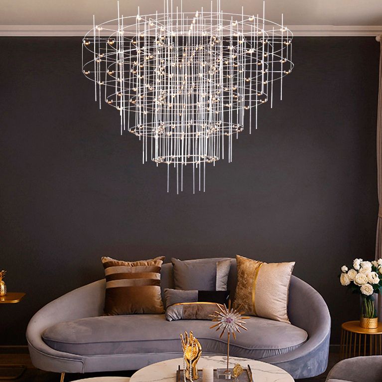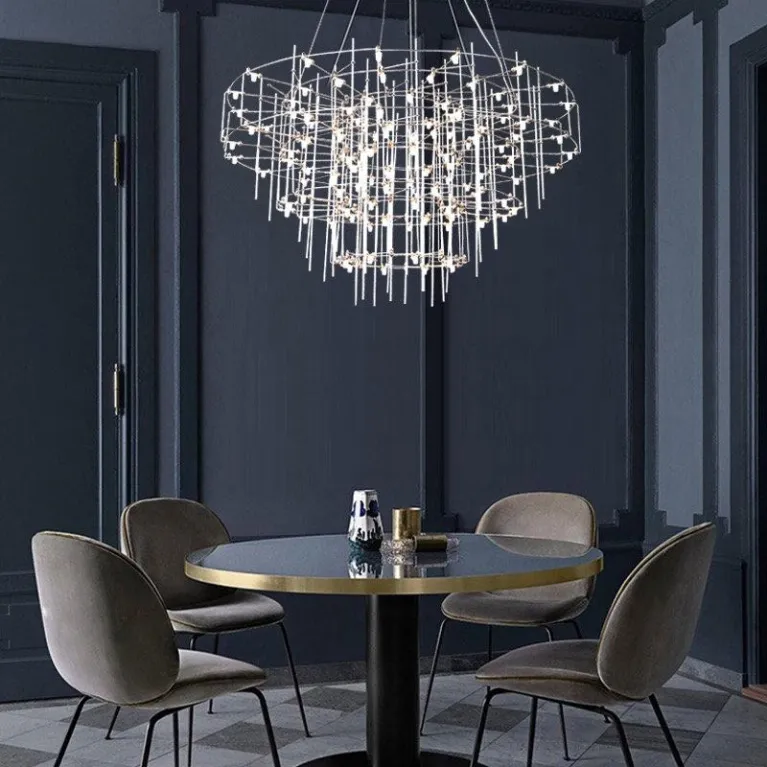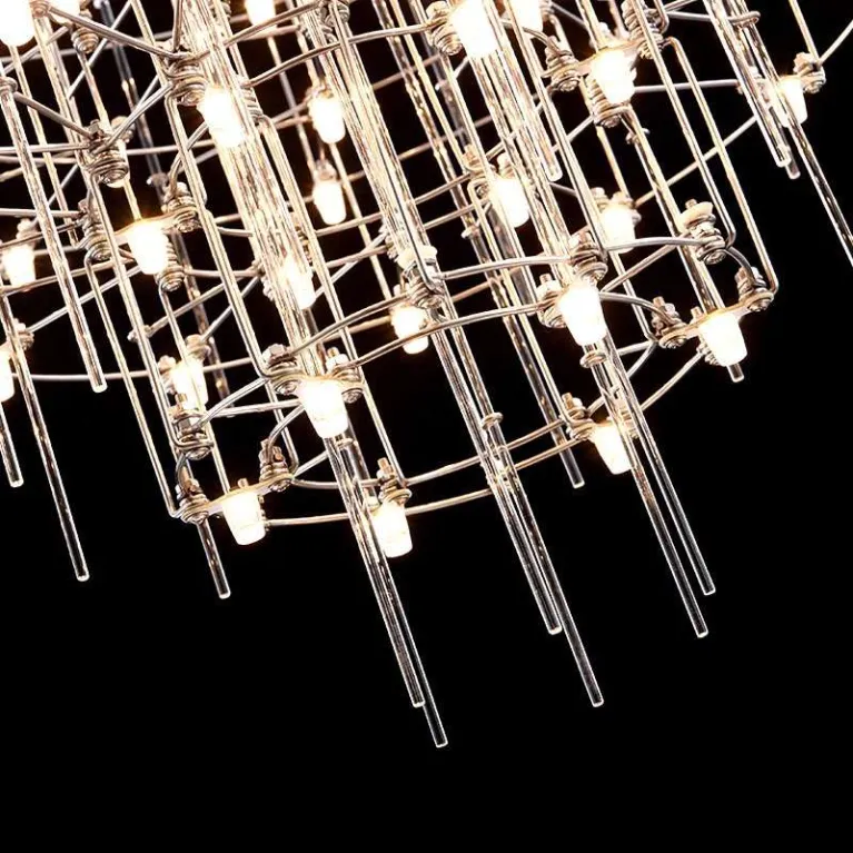 Преобладающий цвет плафонов: Хром, арматуры: Хром; материал изготовления арматуры: Металл, размеры, мм: / высота 500 / диаметр 600. Общая мощность – 100 Ватт. Основной тип ламп, предусмотренный производителем: Светодиодная с цоколем LED. В зависимости от предпочтений можно использовать лампы теплового, холодного или нейтрального света, за исключением люстр с типом цоколя LED.