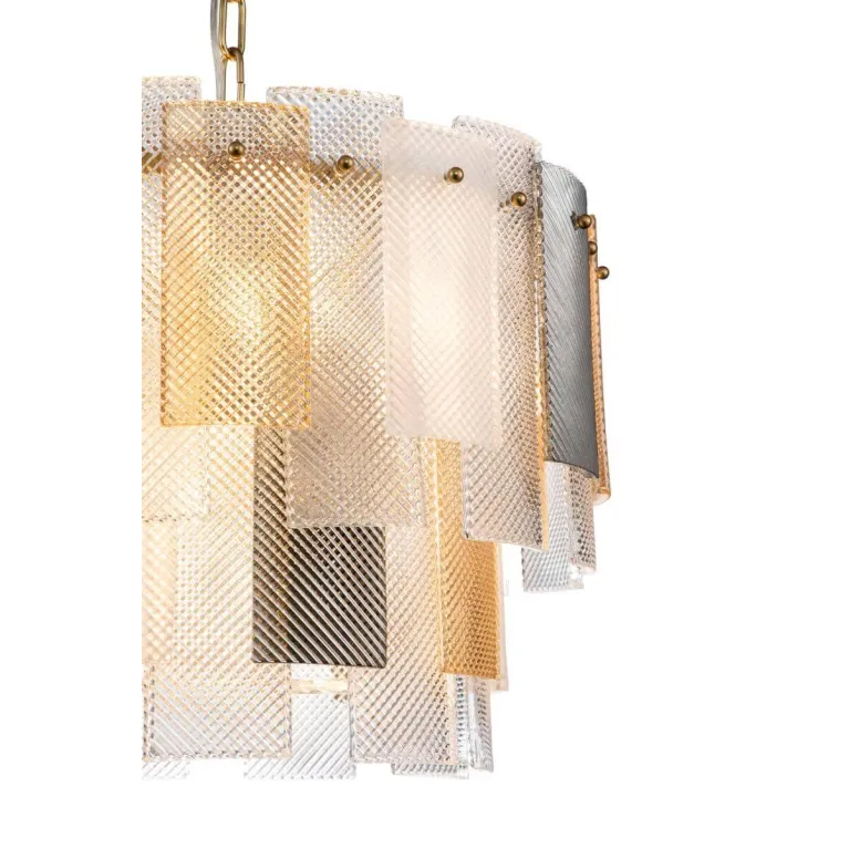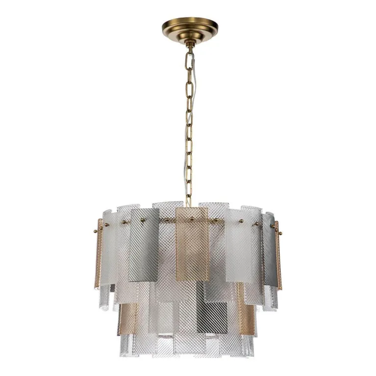 Подвесная конструкция люстры позволяет регулировать ее высоту, что дает возможность адаптировать освещение в зависимости от высоты потолков и особенностей помещения. Надежное крепление гарантирует стабильность и безопасность в эксплуатации.