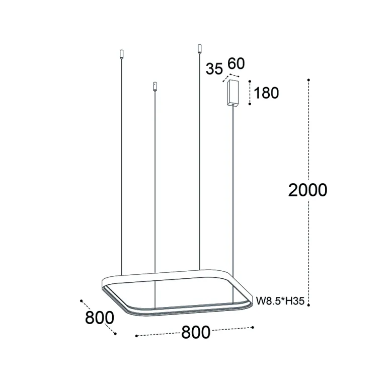 Преобладающий цвет плафонов: Белый, арматуры: Белый; материал изготовления арматуры: Алюминий, размеры, мм: длина 800 / ширина 800 / высота 2000 Общая мощность – 42 Ватт. Основной тип ламп, предусмотренный производителем: Светодиодная с цоколем LED. В зависимости от предпочтений можно использовать лампы теплового, холодного или нейтрального света, за исключением люстр с типом цоколя LED.