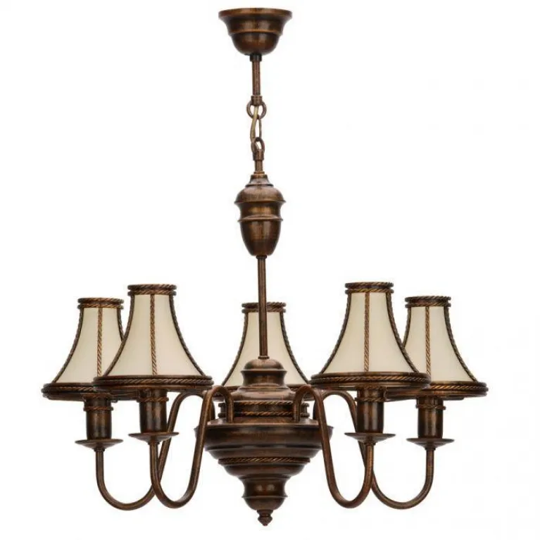 Люстра оснащена пятью лампами, что обеспечивает яркое и равномерное освещение пространства. Она идеально подходит для помещений с высокими потолками, так как её высота составляет 120 см. Основание выполнено из прочного металла, что гарантирует долговечность и надежность конструкции.