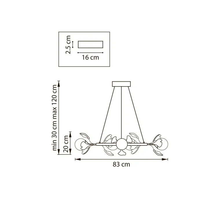 Преобладающий цвет плафонов: Белый, арматуры: Черный; материал изготовления арматуры: Металл, размеры, мм: / высота 1200 / диаметр 830. Общая мощность – 6 Ватт. Основной тип ламп, предусмотренный производителем: Светодиодная с цоколем G9. В зависимости от предпочтений можно использовать лампы теплового, холодного или нейтрального света, за исключением люстр с типом цоколя LED.
