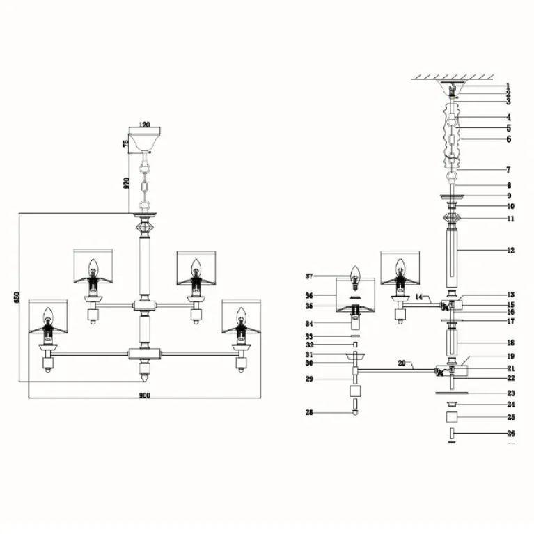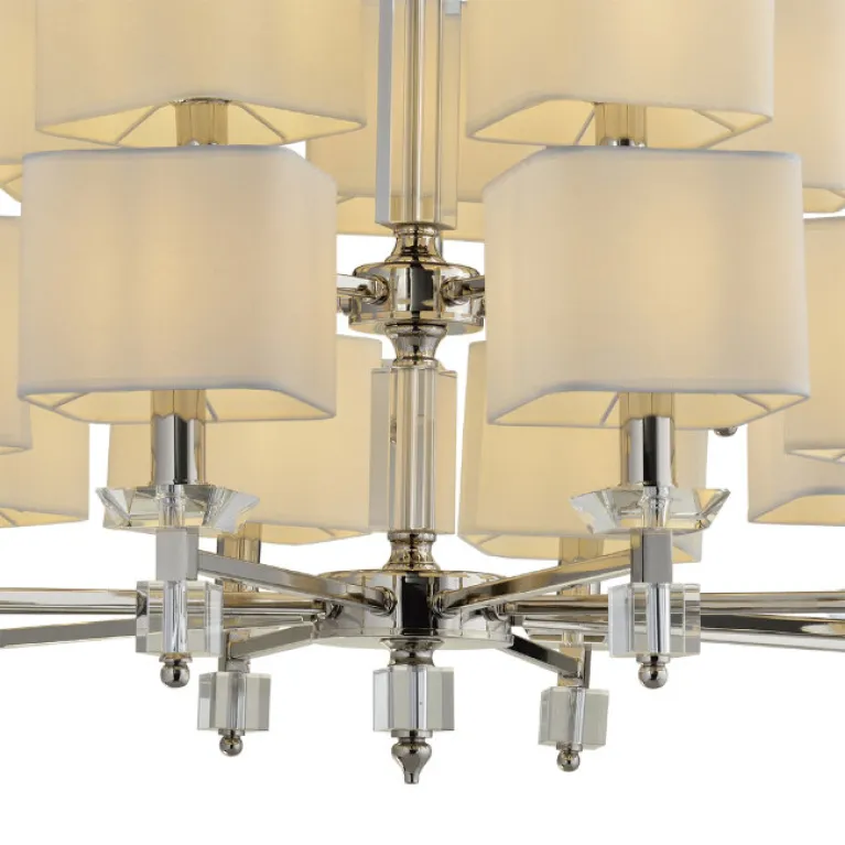 Преобладающий цвет плафонов: Белый, арматуры: Никель; материал изготовления арматуры: Металл, размеры, мм: / высота 440 / диаметр 690. Общая мощность – 600 Ватт, а максимальная площадь освещения до 45 м2. Основной тип ламп, предусмотренный производителем: Накаливания с цоколем E14. В зависимости от предпочтений можно использовать лампы теплового, холодного или нейтрального света, за исключением люстр с типом цоколя LED.