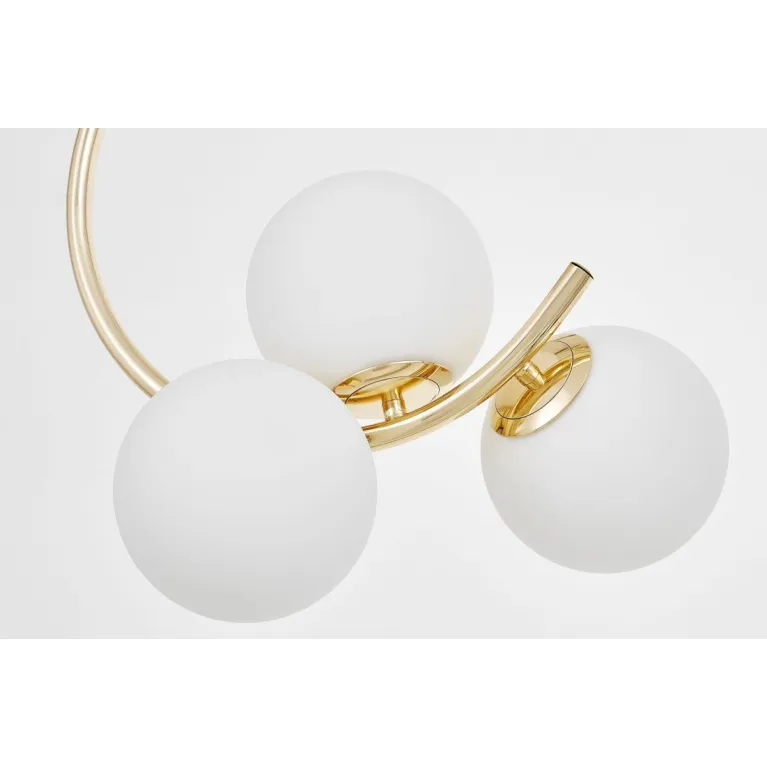 Преобладающий цвет плафонов: Белый, арматуры: Золото; материал изготовления арматуры: Металл, размеры, мм: длина 360 / ширина 300 / высота 480 Общая мощность – 120 Ватт. Основной тип ламп, предусмотренный производителем: Накаливания с цоколем E27. В зависимости от предпочтений можно использовать лампы теплового, холодного или нейтрального света, за исключением люстр с типом цоколя LED.