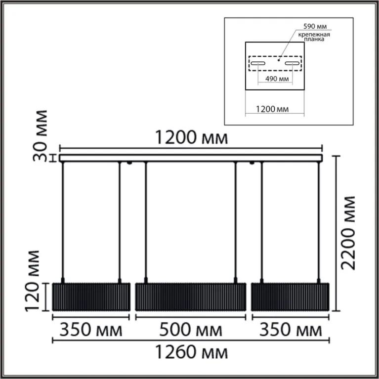 Преобладающий цвет плафонов: Черный, арматуры: Черный; материал изготовления арматуры: Металл, размеры, мм: длина 1260 / ширина 500 / высота 2200 Общая мощность – 70 Ватт, а максимальная площадь освещения до 14 м2. Основной тип ламп, предусмотренный производителем: Светодиодная с цоколем LED. В зависимости от предпочтений можно использовать лампы теплового, холодного или нейтрального света, за исключением люстр с типом цоколя LED.