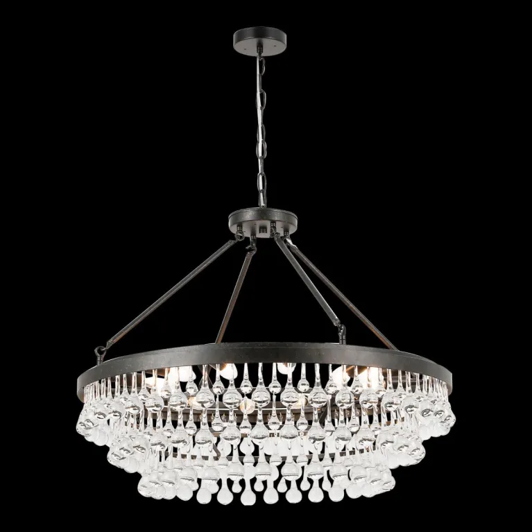 Преобладающий цвет плафонов: Прозрачный, арматуры: Черный; материал изготовления арматуры: Металл, размеры, мм: / ширина 800 / высота 1000 Общая мощность – 600 Ватт. Основной тип ламп, предусмотренный производителем: Накаливания с цоколем E14. В зависимости от предпочтений можно использовать лампы теплового, холодного или нейтрального света, за исключением люстр с типом цоколя LED.