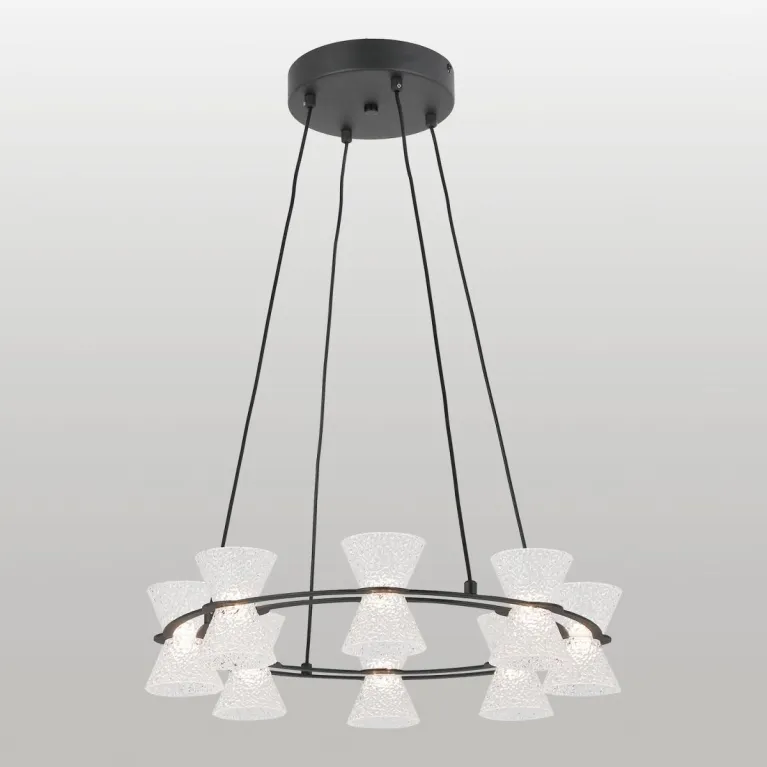 Преобладающий цвет плафонов: Прозрачный, арматуры: Черный; материал изготовления арматуры: Металл, размеры, мм: / ширина 480 / высота 1200 Общая мощность – 24 Ватт. Основной тип ламп, предусмотренный производителем: Светодиодная с цоколем LED. В зависимости от предпочтений можно использовать лампы теплового, холодного или нейтрального света, за исключением люстр с типом цоколя LED.