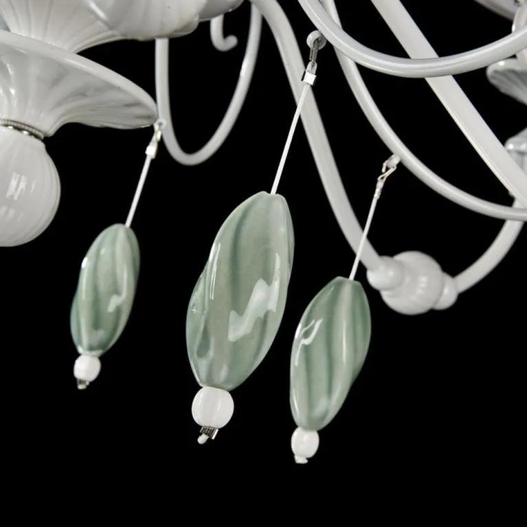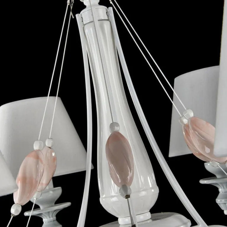 Люстра оснащена шестью лампами, которые обеспечивают яркое и равномерное освещение. Она идеально подходит для просторных гостиных, столовых или спален, создавая комфортную атмосферу и делая пространство более уютным. Основание выполнено из прочного металла, что гарантирует долговечность и надежность конструкции.