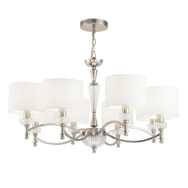 Люстра оснащена восемью лампами, что обеспечивает яркое и равномерное освещение. Она идеально подходит для просторных гостиной, столовой или спальни, создавая приятную атмосферу и делая пространство более уютным.