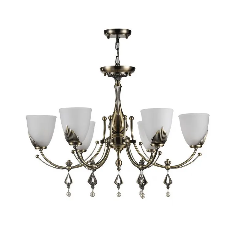 Люстра оснащена шестью источниками света с цоколем E14, что позволяет использовать различные типы ламп, включая энергосберегающие и светодиодные. Суммарная мощность ламп составляет 62 Вт, что обеспечивает яркое и равномерное освещение пространства.
