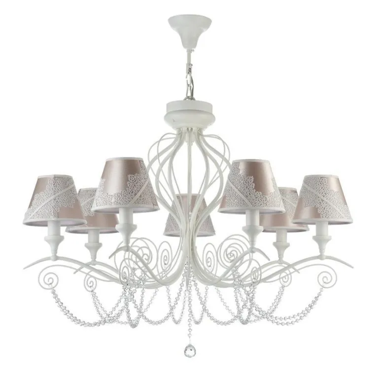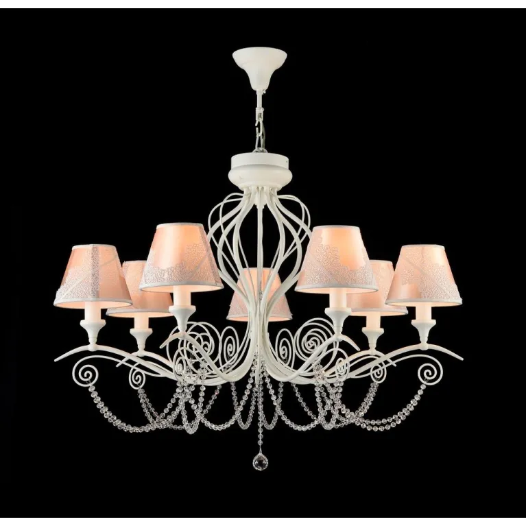 Люстра оснащена семью лампами, что обеспечивает яркое и равномерное освещение пространства. Она идеально подходит для гостиной, столовой или спальни, добавляя уюта и гармонии в ваш дом. Основание выполнено из прочного металла, что гарантирует долговечность и надежность конструкции.