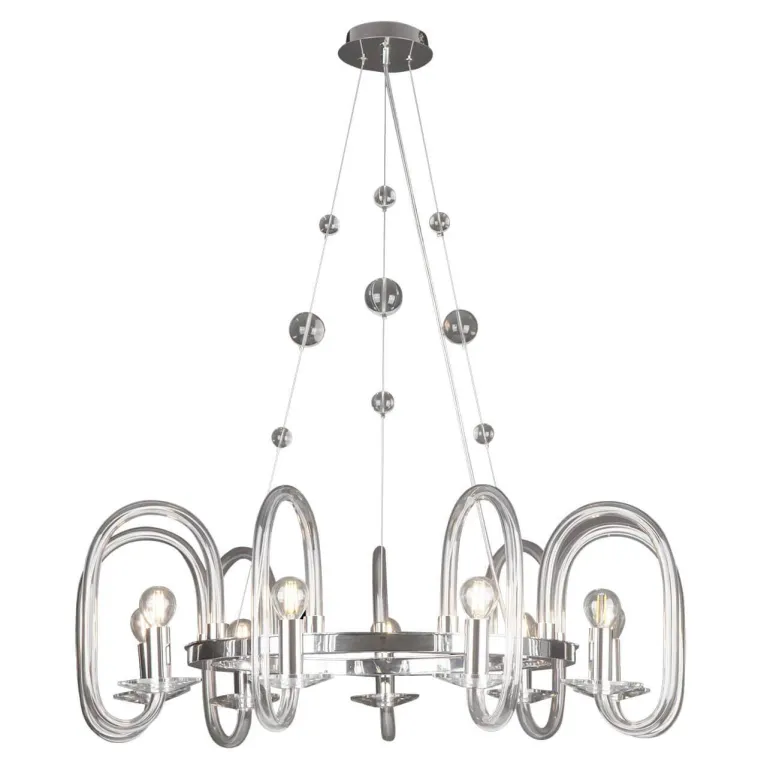 Люстра оснащена 9 источниками света с цоколем E14, что позволяет использовать различные типы ламп, включая энергосберегающие и светодиодные. Суммарная мощность ламп - 54 Вт, что обеспечивает яркое и равномерное освещение пространства.