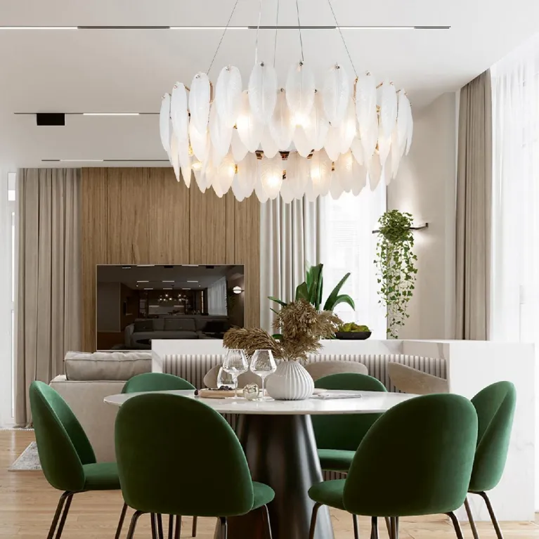 Преобладающий цвет плафонов: Белый, арматуры: Золото; материал изготовления арматуры: Металл, размеры, мм: / высота 1200 / диаметр 800. Общая мощность – 480 Ватт, а максимальная площадь освещения до 20 м2. Основной тип ламп, предусмотренный производителем: Накаливания с цоколем E14. В зависимости от предпочтений можно использовать лампы теплового, холодного или нейтрального света, за исключением люстр с типом цоколя LED.
