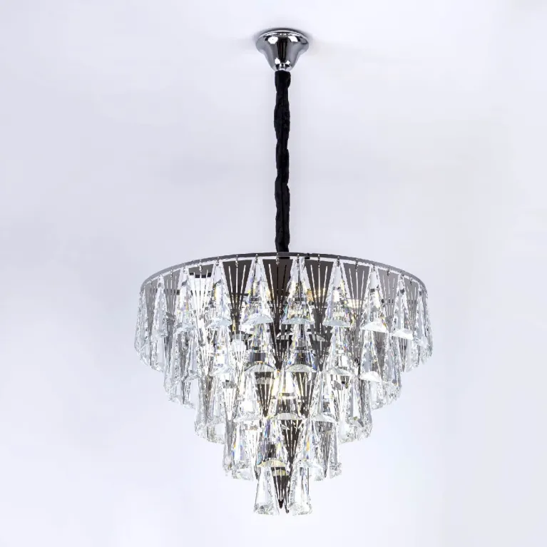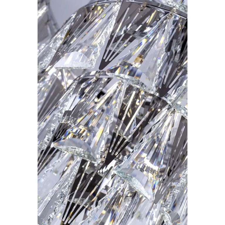 Преобладающий цвет плафонов: Прозрачный, арматуры: Хром; материал изготовления арматуры: Металл, размеры, мм: / высота 870 / диаметр 500. Общая мощность – 440 Ватт, а максимальная площадь освещения до 22 м2. Основной тип ламп, предусмотренный производителем: Накаливания с цоколем E14. В зависимости от предпочтений можно использовать лампы теплового, холодного или нейтрального света, за исключением люстр с типом цоколя LED.