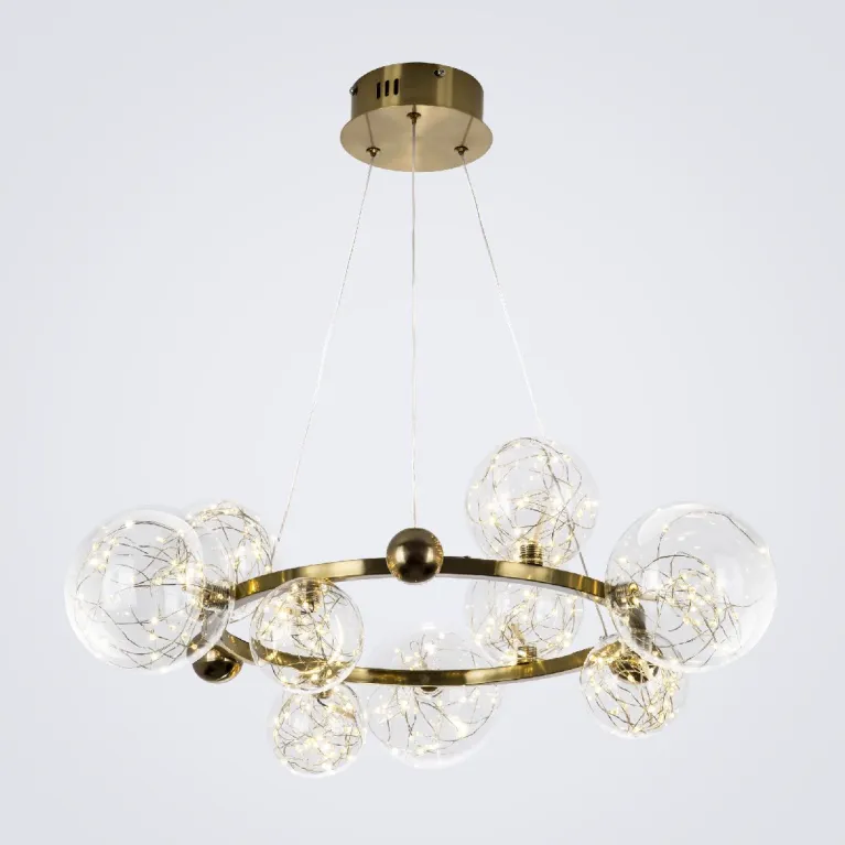 Преобладающий цвет плафонов: Прозрачный, арматуры: Бронза; материал изготовления арматуры: Металл, размеры, мм: / высота 1100 / диаметр 650. Общая мощность – 40 Ватт, а максимальная площадь освещения до 15 м2. Основной тип ламп, предусмотренный производителем: Светодиодная с цоколем LED. В зависимости от предпочтений можно использовать лампы теплового, холодного или нейтрального света, за исключением люстр с типом цоколя LED.