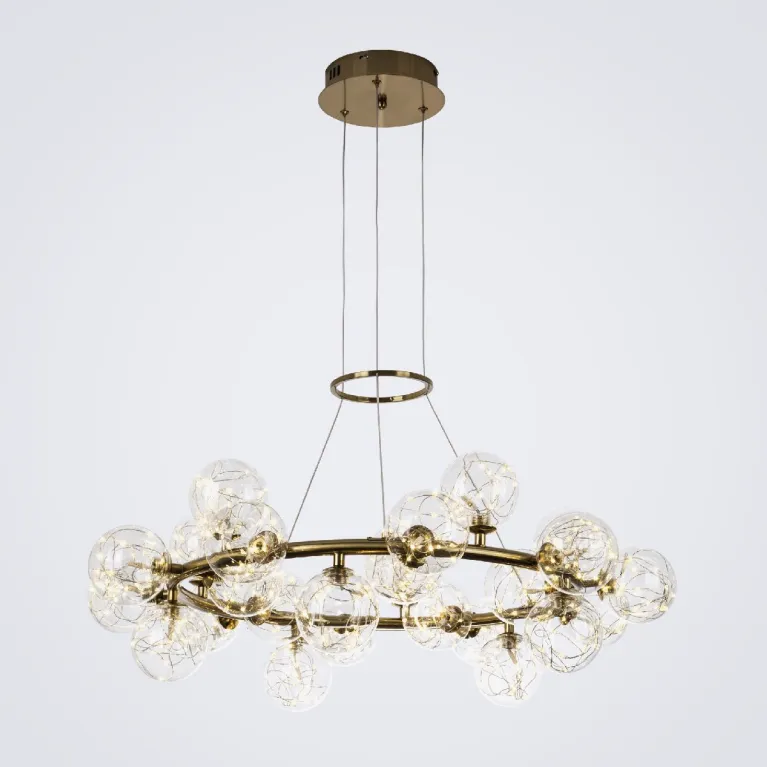 Преобладающий цвет плафонов: Прозрачный, арматуры: Бронза; материал изготовления арматуры: Металл, размеры, мм: / высота 1050 / диаметр 790. Общая мощность – 60 Ватт. Основной тип ламп, предусмотренный производителем: Светодиодная с цоколем LED. В зависимости от предпочтений можно использовать лампы теплового, холодного или нейтрального света, за исключением люстр с типом цоколя LED.