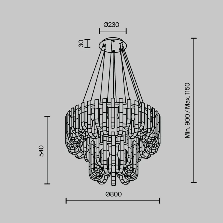 Преобладающий цвет плафонов: Прозрачный, арматуры: Латунь; материал изготовления арматуры: Металл, размеры, мм: / высота 1200 / диаметр 800. Общая мощность – Ватт, а максимальная площадь освещения до 20 м2. Основной тип ламп, предусмотренный производителем: с цоколем G9. В зависимости от предпочтений можно использовать лампы теплового, холодного или нейтрального света, за исключением люстр с типом цоколя LED.