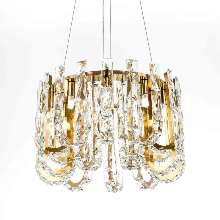 Преобладающий цвет плафонов: Прозрачный, арматуры: Латунь; материал изготовления арматуры: Металл, размеры, мм: / высота 1400 / диаметр 400. Общая мощность – Ватт, а максимальная площадь освещения до 15 м2. Основной тип ламп, предусмотренный производителем: с цоколем G9. В зависимости от предпочтений можно использовать лампы теплового, холодного или нейтрального света, за исключением люстр с типом цоколя LED.