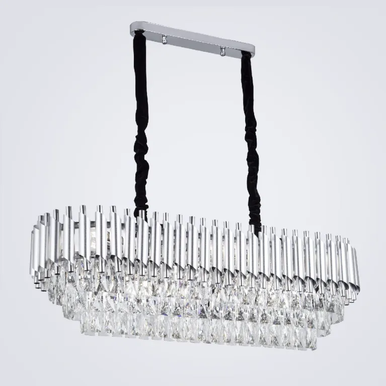 Преобладающий цвет плафонов: Прозрачный, арматуры: Серебро; материал изготовления арматуры: Металл, размеры, мм: длина 900 / ширина 330 / высота 1050 Общая мощность – 480 Ватт, а максимальная площадь освещения до 25 м2. Основной тип ламп, предусмотренный производителем: Накаливания с цоколем E14. В зависимости от предпочтений можно использовать лампы теплового, холодного или нейтрального света, за исключением люстр с типом цоколя LED.
