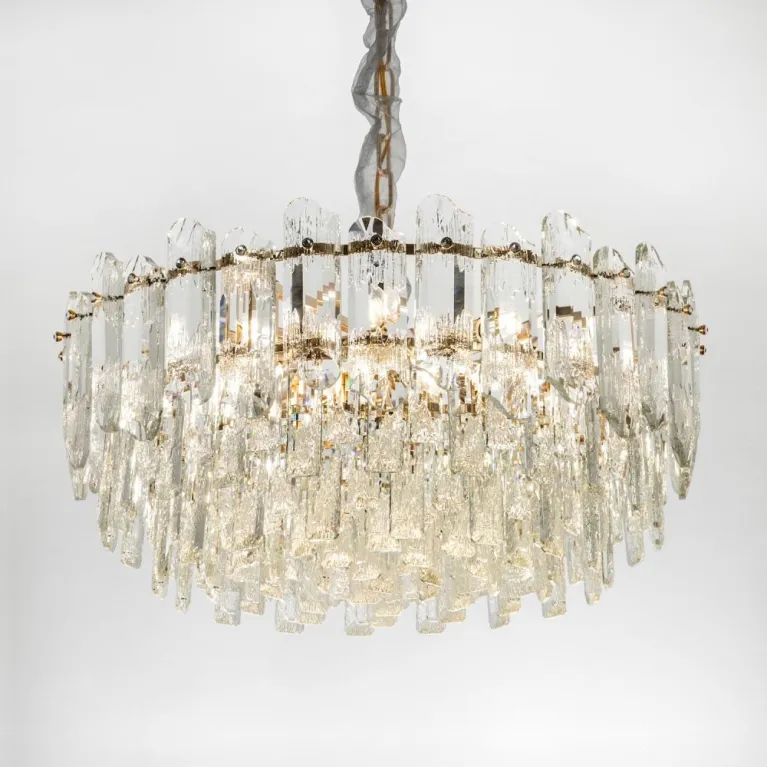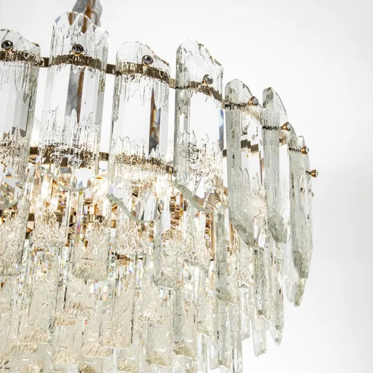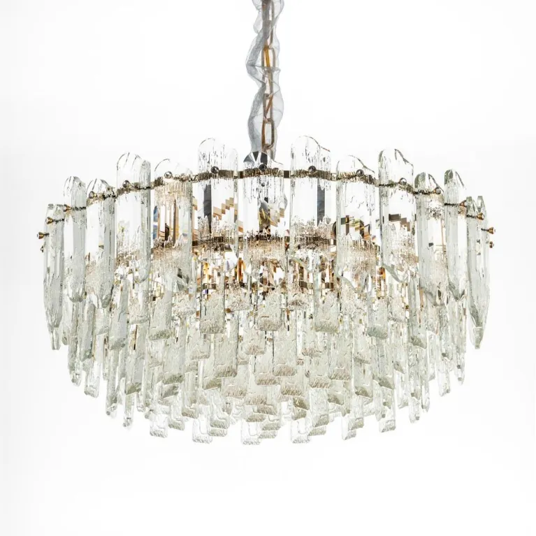 Преобладающий цвет плафонов: Прозрачный, арматуры: Золото; материал изготовления арматуры: Металл, размеры, мм: / высота 1000 / диаметр 600. Общая мощность – 480 Ватт, а максимальная площадь освещения до 20 м2. Основной тип ламп, предусмотренный производителем: Накаливания с цоколем E14. В зависимости от предпочтений можно использовать лампы теплового, холодного или нейтрального света, за исключением люстр с типом цоколя LED.
