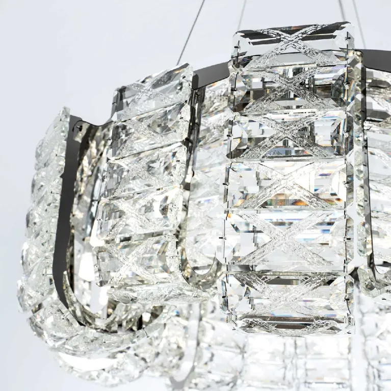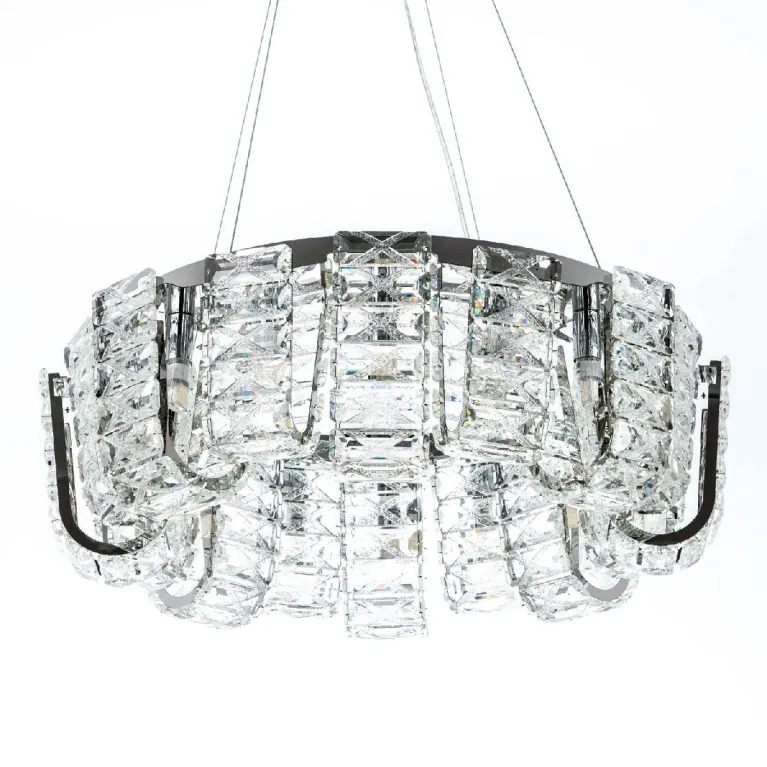 Преобладающий цвет плафонов: Прозрачный, арматуры: Хром; материал изготовления арматуры: Металл, размеры, мм: / высота 1350 / диаметр 600. Общая мощность – Ватт, а максимальная площадь освещения до 17 м2. Основной тип ламп, предусмотренный производителем: с цоколем G9. В зависимости от предпочтений можно использовать лампы теплового, холодного или нейтрального света, за исключением люстр с типом цоколя LED.