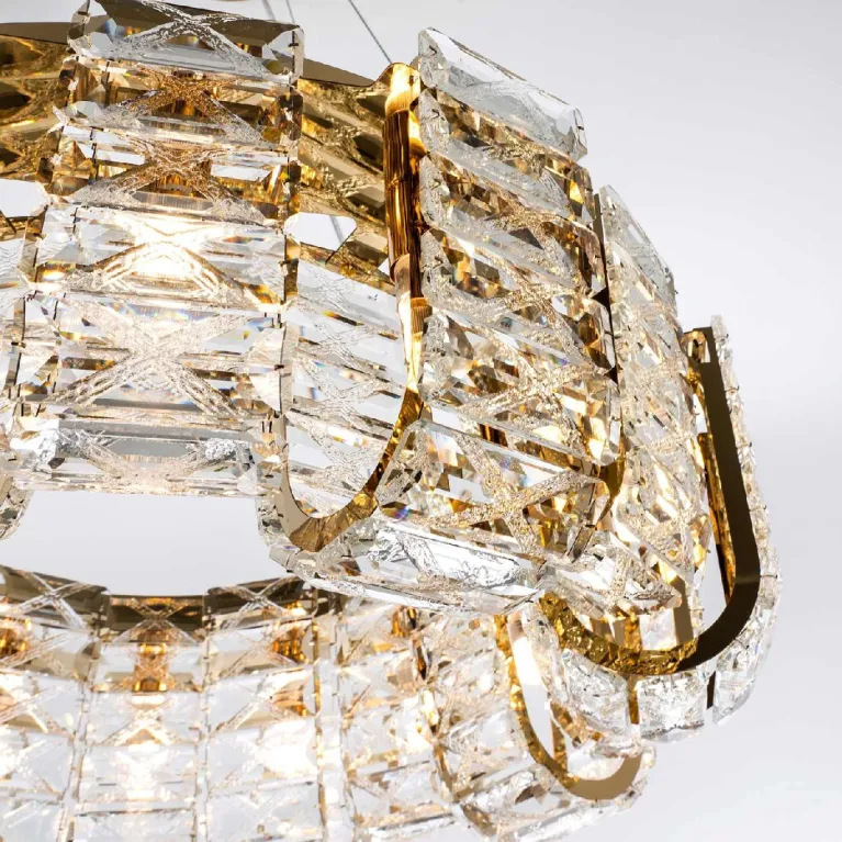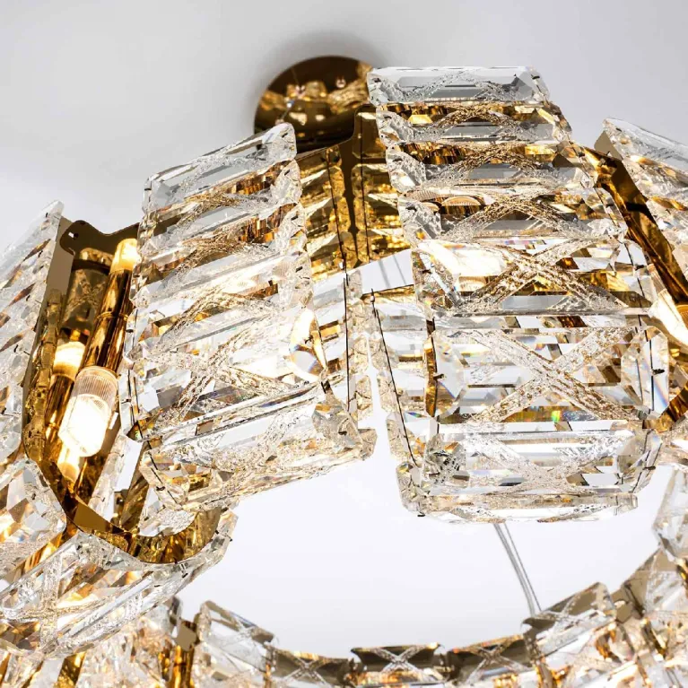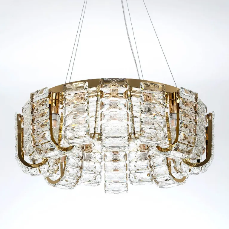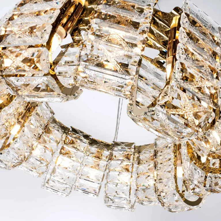 Преобладающий цвет плафонов: Прозрачный, арматуры: Золото; материал изготовления арматуры: Металл, размеры, мм: / высота 1200 / диаметр 600. Общая мощность – Ватт, а максимальная площадь освещения до 17 м2. Основной тип ламп, предусмотренный производителем: с цоколем G9. В зависимости от предпочтений можно использовать лампы теплового, холодного или нейтрального света, за исключением люстр с типом цоколя LED.