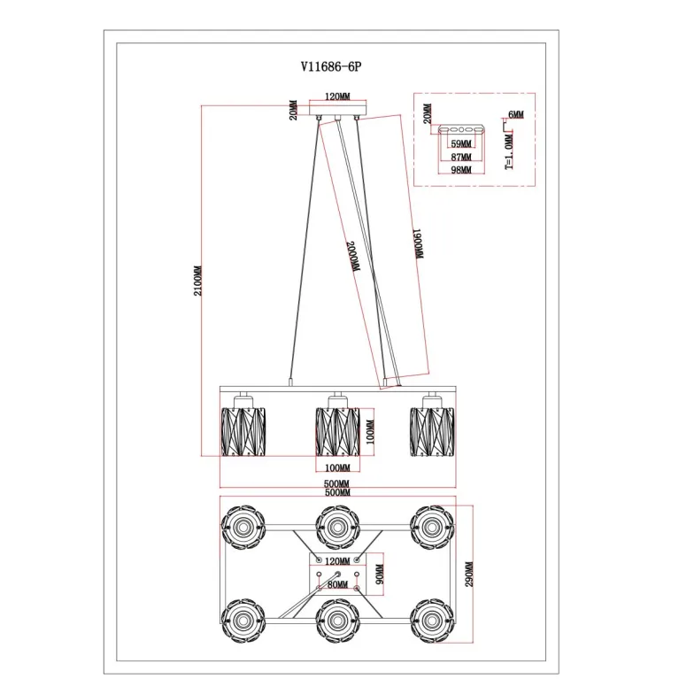 Подвесная люстра Moderli Prismique V11686-6P в Нижнем Новгороде итальянского производителя Moderli отлично подходит для интерьеров в стиле модерн, рекомендуемое помещение: Для гостинной.