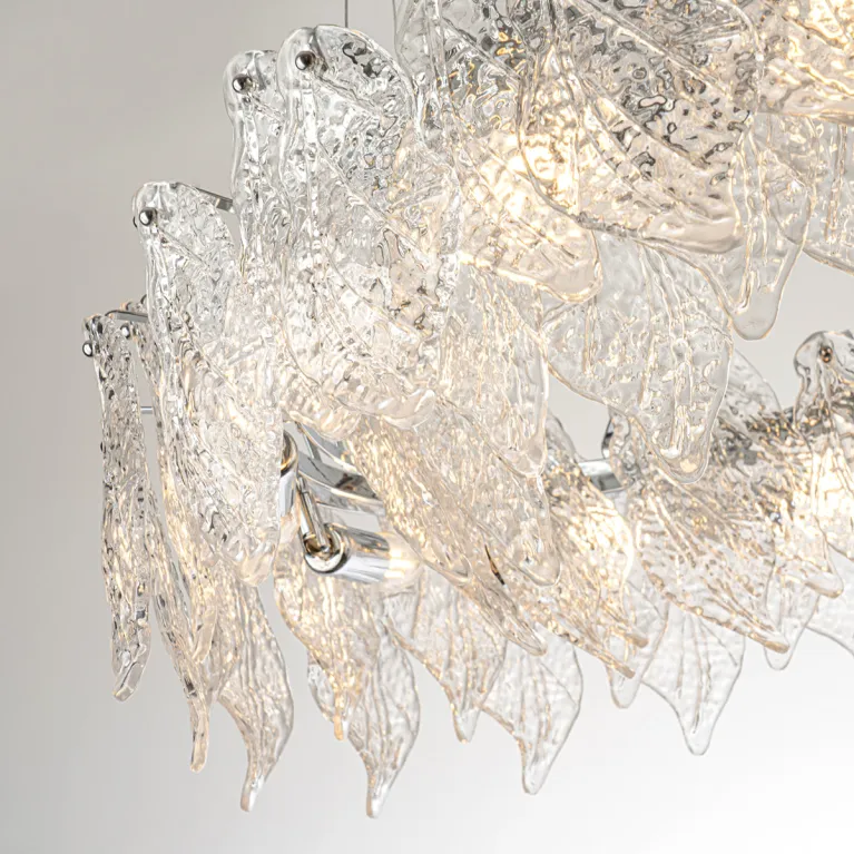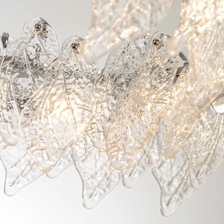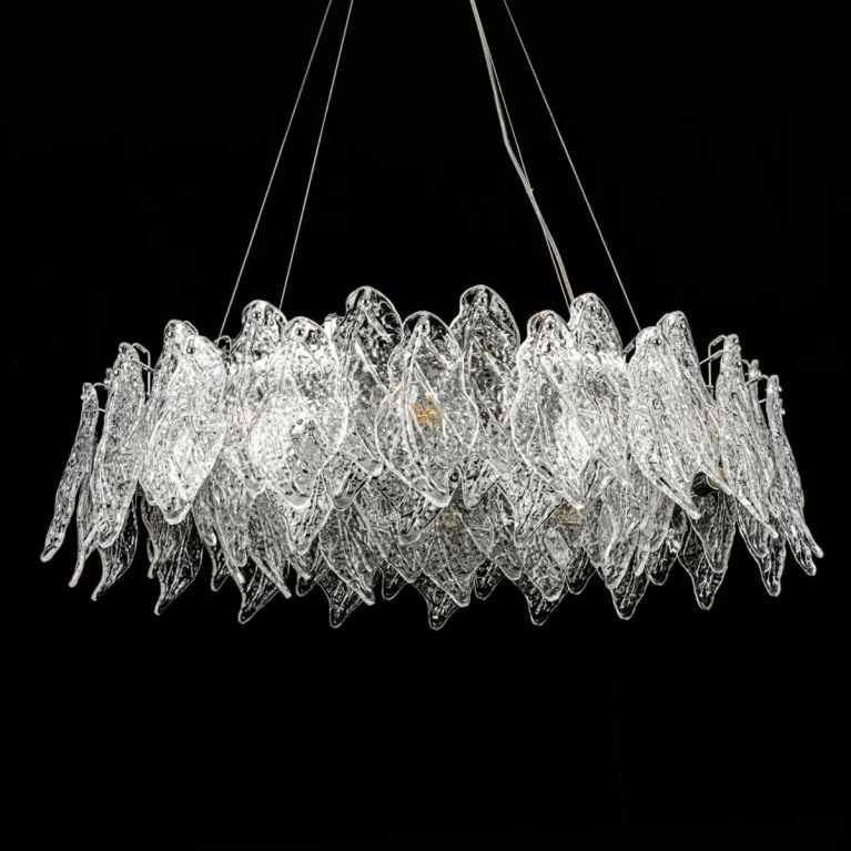 Преобладающий цвет плафонов: Прозрачный, арматуры: Хром; материал изготовления арматуры: Металл, размеры, мм: / высота 1250 / диаметр 800. Общая мощность – 480 Ватт, а максимальная площадь освещения до 20 м2. Основной тип ламп, предусмотренный производителем: Накаливания с цоколем E14. В зависимости от предпочтений можно использовать лампы теплового, холодного или нейтрального света, за исключением люстр с типом цоколя LED.