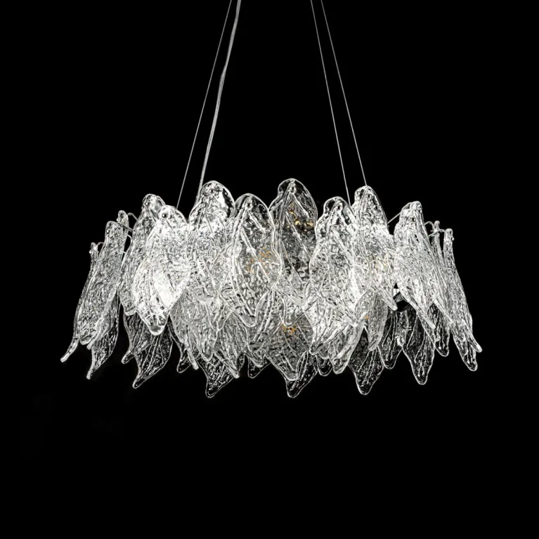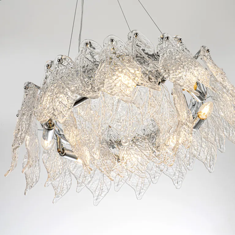Преобладающий цвет плафонов: Прозрачный, арматуры: Хром; материал изготовления арматуры: Металл, размеры, мм: / высота 1250 / диаметр 580. Общая мощность – 320 Ватт, а максимальная площадь освещения до 17 м2. Основной тип ламп, предусмотренный производителем: Накаливания с цоколем E14. В зависимости от предпочтений можно использовать лампы теплового, холодного или нейтрального света, за исключением люстр с типом цоколя LED.