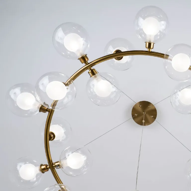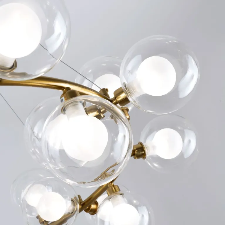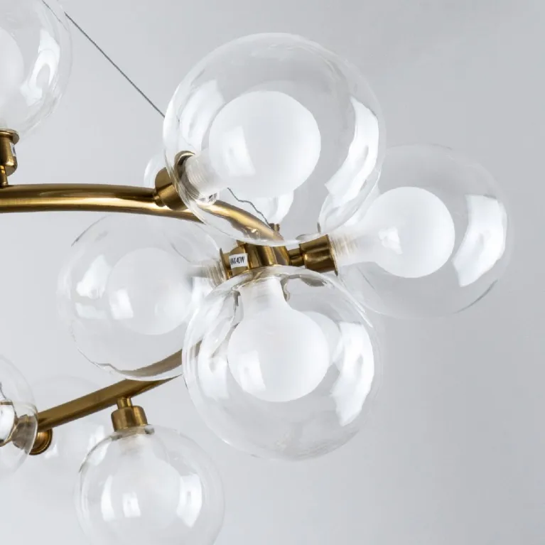 Преобладающий цвет плафонов: Прозрачный, арматуры: Латунь; материал изготовления арматуры: Металл, размеры, мм: / высота 1200 / диаметр 960. Общая мощность – Ватт, а максимальная площадь освещения до 25 м2. Основной тип ламп, предусмотренный производителем: с цоколем G9. В зависимости от предпочтений можно использовать лампы теплового, холодного или нейтрального света, за исключением люстр с типом цоколя LED.