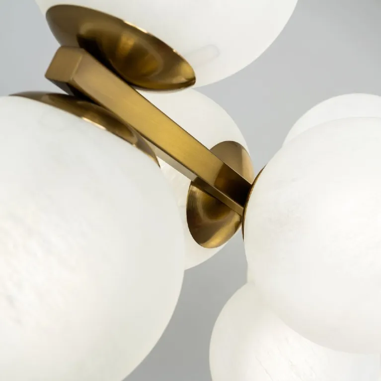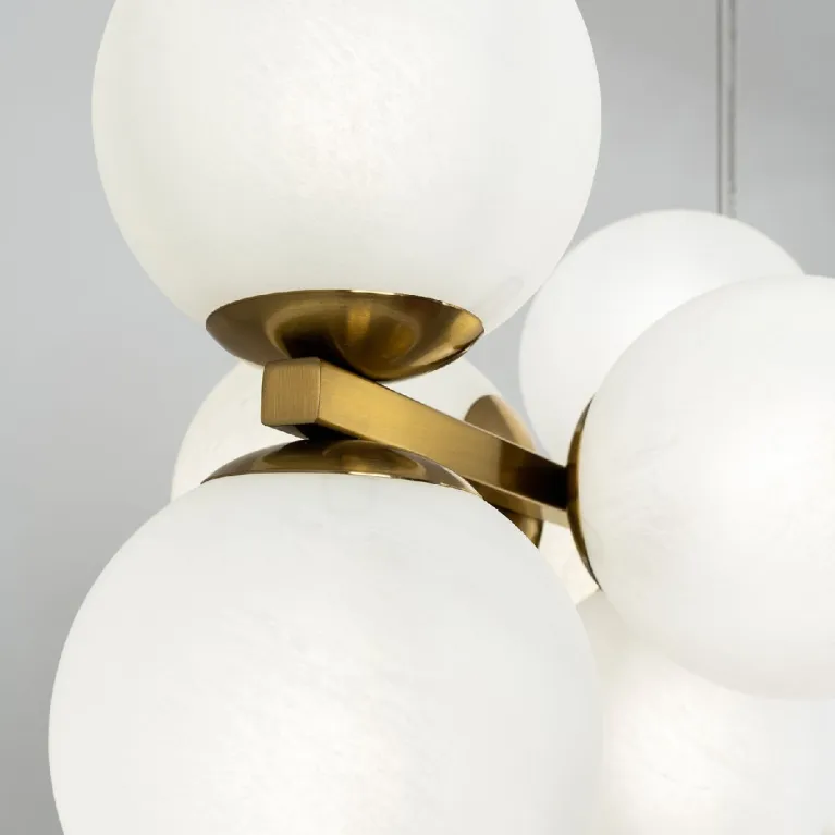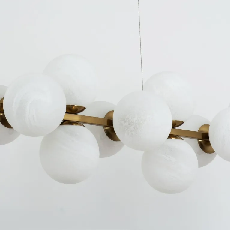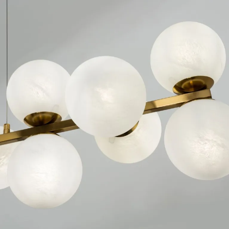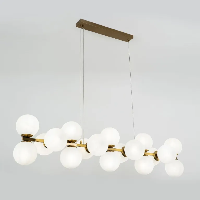 Преобладающий цвет плафонов: Белый, арматуры: Латунь; материал изготовления арматуры: Металл, размеры, мм: длина 1250 / ширина 280 / высота 1200 Общая мощность – 720 Ватт, а максимальная площадь освещения до 20 м2. Основной тип ламп, предусмотренный производителем: Накаливания с цоколем E14. В зависимости от предпочтений можно использовать лампы теплового, холодного или нейтрального света, за исключением люстр с типом цоколя LED.