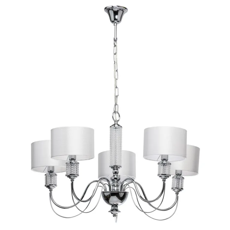 Люстра оснащена пятью лампами, которые обеспечивают яркое и равномерное освещение пространства. Она прекрасно подходит для помещений с высокими потолками благодаря своей высоте в 120 см. Основание выполнено из прочного металла, что гарантирует долговечность и надежность конструкции.