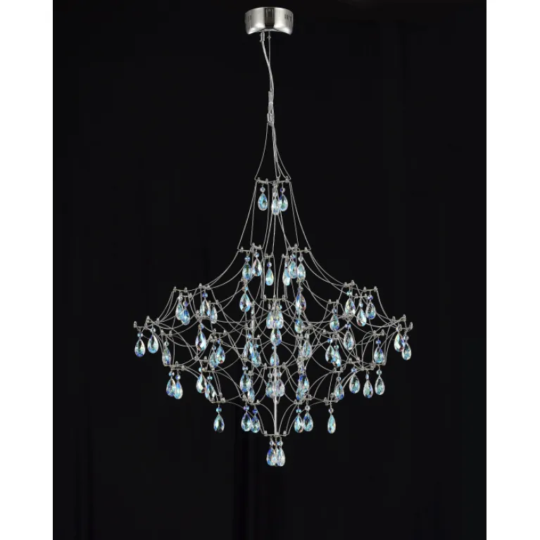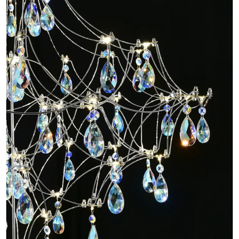 Преобладающий цвет арматуры: Хром; материал изготовления арматуры: Металл, размеры, мм: длина 780 / ширина 780 / высота 2450 Общая мощность – 33 Ватт, а максимальная площадь освещения до 12 м2. Основной тип ламп, предусмотренный производителем: Светодиодная с цоколем LED. В зависимости от предпочтений можно использовать лампы теплового, холодного или нейтрального света, за исключением люстр с типом цоколя LED.