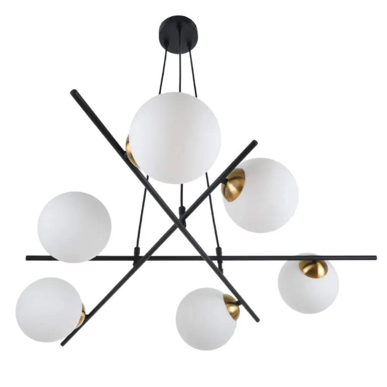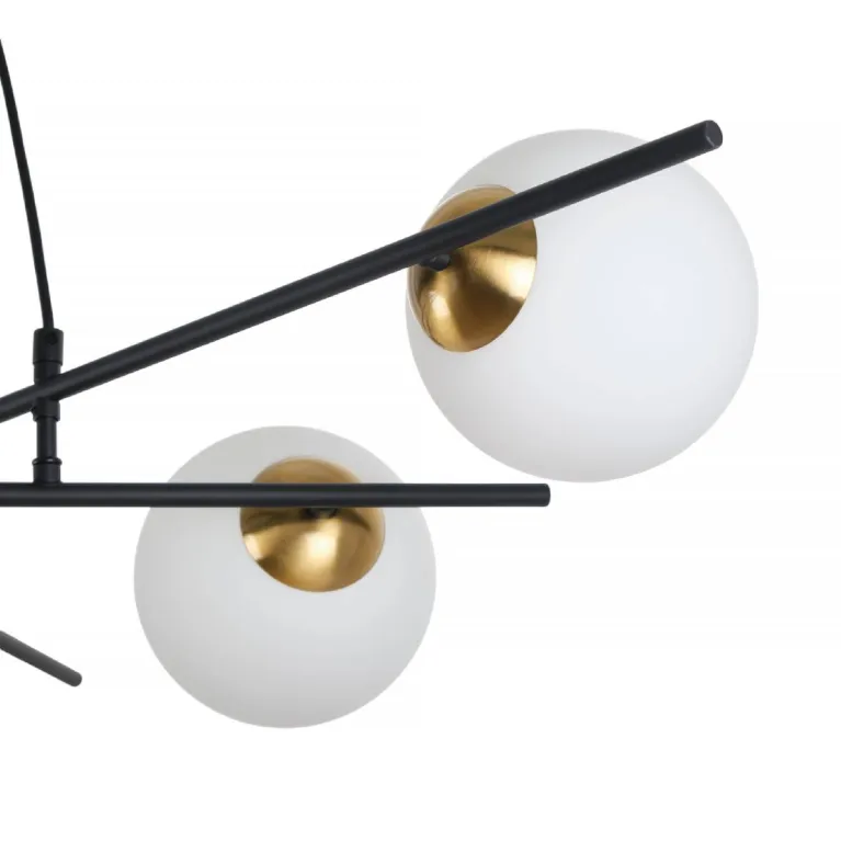 Преобладающий цвет плафонов: Белый, арматуры: Черный; материал изготовления арматуры: Металл, размеры, мм: / высота 1000 / диаметр 950. Общая мощность – 150 Ватт, а максимальная площадь освещения до 20 м2. Основной тип ламп, предусмотренный производителем: Галогеновая с цоколем G9. В зависимости от предпочтений можно использовать лампы теплового, холодного или нейтрального света, за исключением люстр с типом цоколя LED.