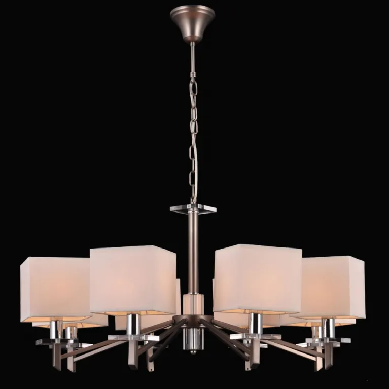 Люстра оснащена восемью источниками света с цоколем E14, что позволяет использовать различные типы ламп, включая энергосберегающие и светодиодные. Суммарная мощность ламп - 320 Вт, что обеспечивает яркое и равномерное освещение пространства.
