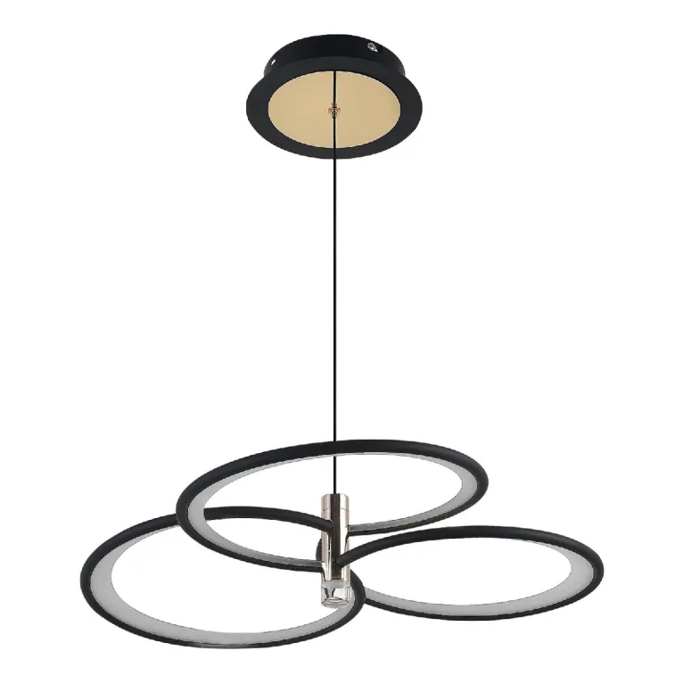 Преобладающий цвет плафонов: Белый, арматуры: Черный; материал изготовления арматуры: Металл, размеры, мм: / высота 110 / диаметр 550. Общая мощность – 120 Ватт, а максимальная площадь освещения до 23 м2. Основной тип ламп, предусмотренный производителем: Светодиодная с цоколем LED. В зависимости от предпочтений можно использовать лампы теплового, холодного или нейтрального света, за исключением люстр с типом цоколя LED.