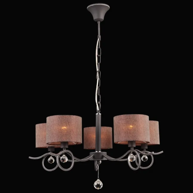 Люстра оснащена пятью лампами типа E14, что позволяет использовать различные виды светильников - от традиционных ламп накаливания до современных энергосберегающих и светодиодных. Суммарная мощность ламп - 60 Вт, что обеспечивает достаточное освещение и создает уютную атмосферу.