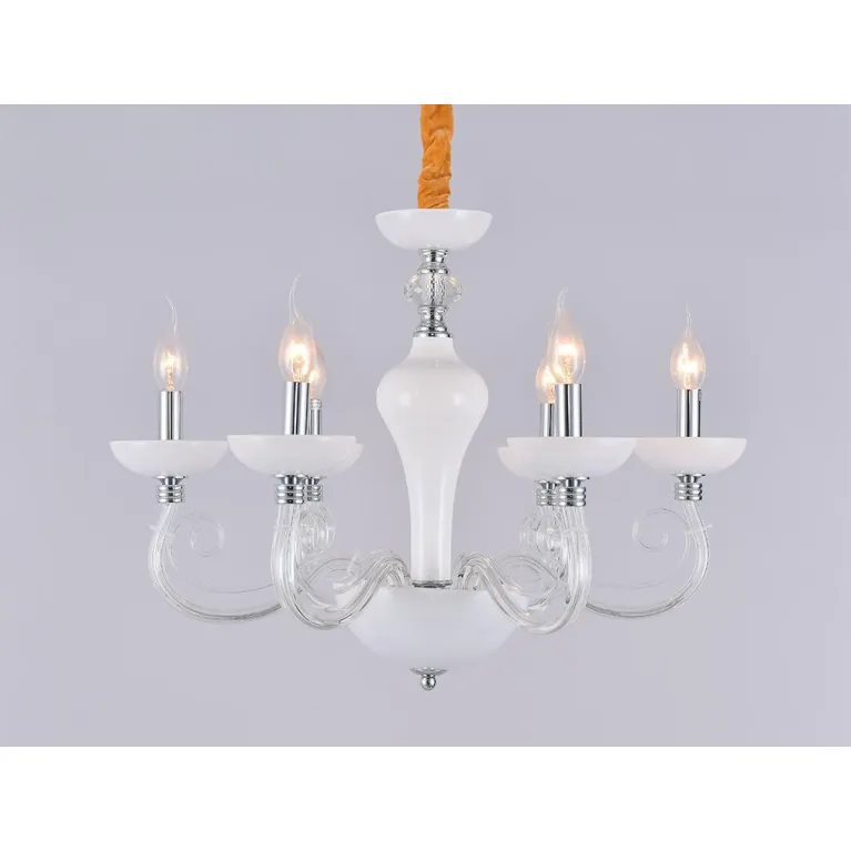 Люстра оснащена шестью лампами, которые совместимы с цоколем E14 и позволяют использовать как традиционные лампы накаливания, так и энергосберегающие или светодиодные варианты. Суммарная мощность ламп - 36 Вт, что обеспечивает яркое и равномерное освещение пространства.