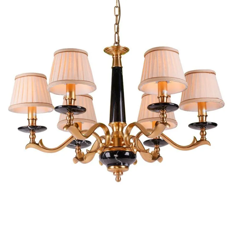 Люстра оснащена шестью лампами, что обеспечивает яркое и равномерное освещение пространства. Она идеально подходит для помещений с высокими потолками, так как её высота составляет 60 см. Благодаря патронам E14 можно использовать лампы различных типов и мощности, что позволяет создавать нужное настроение и уровень освещения.