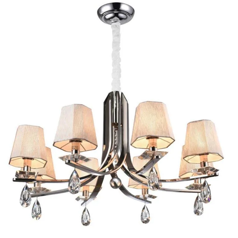 Люстра оснащена шестью источниками света с цоколем E14, что позволяет использовать как традиционные лампы накаливания, так и энергосберегающие или светодиодные лампы, обеспечивая максимальную гибкость в выборе освещения. Суммарная мощность ламп - 300 Вт, что гарантирует яркое и равномерное освещение пространства.