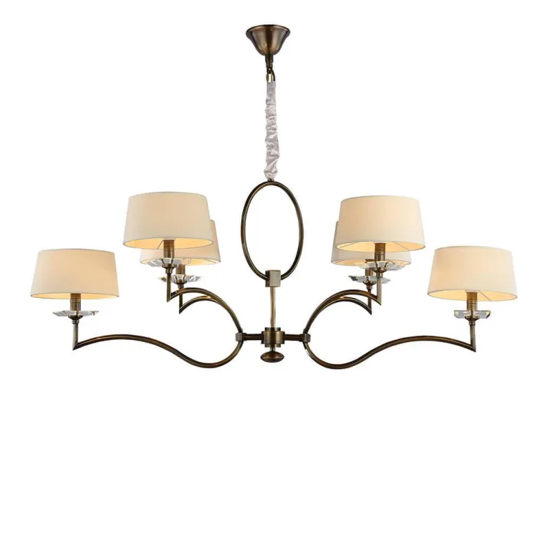 Светильник оснащен тремя источниками света с цоколем E27, что позволяет использовать лампы различных типов и мощности. Такое решение обеспечивает яркое и равномерное освещение, создавая комфортную атмосферу в гостиной, столовой или спальне.
