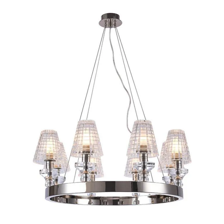 Изготовленная из прочного металла и покрытая тонким слоем никеля, эта люстра отличается долговечностью и качеством. Плафоны из белого матового стекла придают светильнику лёгкий и современный вид, обеспечивая мягкое и равномерное рассеивание света.