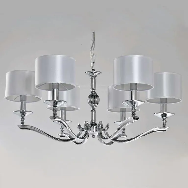 Люстра оснащена пятью лампами, что обеспечивает яркое и равномерное освещение пространства. Она идеально подходит для помещений с высокими потолками, добавляя им утонченности и гармонии. Основание выполнено из прочного металла, что гарантирует долговечность и надежность конструкции.