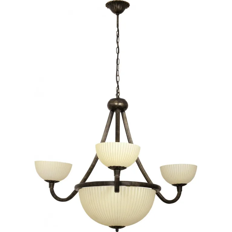 Люстра оснащена пятью лампами, что обеспечивает яркое и равномерное освещение пространства. Она совместима с лампами типа E27, что позволяет использовать как традиционные лампы накаливания, так и энергосберегающие или светодиодные варианты, предоставляя вам полную свободу выбора источников света.