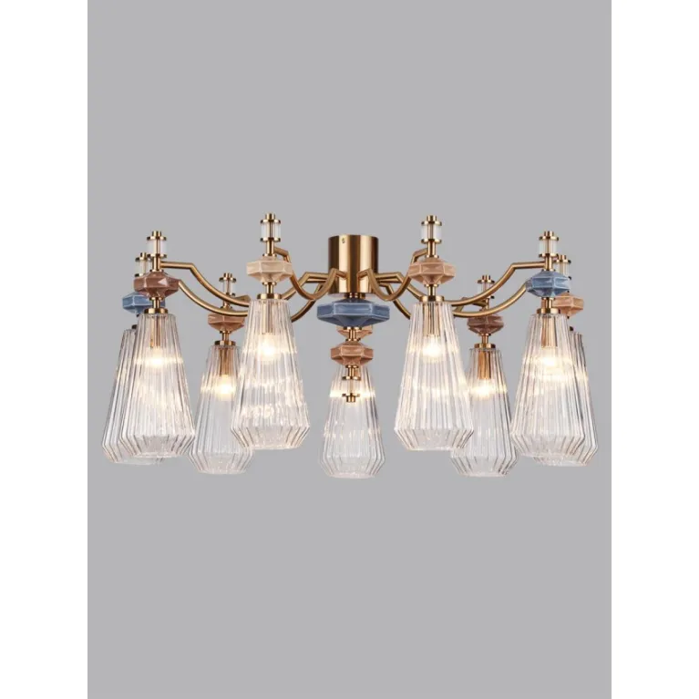 Преобладающий цвет плафонов: Прозрачный, арматуры: Разноцветный; материал изготовления арматуры: Металл, размеры, мм: / высота 1910 / диаметр 880. Общая мощность – 360 Ватт, а максимальная площадь освещения до 20 м2. Основной тип ламп, предусмотренный производителем: Накаливания с цоколем E14. В зависимости от предпочтений можно использовать лампы теплового, холодного или нейтрального света, за исключением люстр с типом цоколя LED.