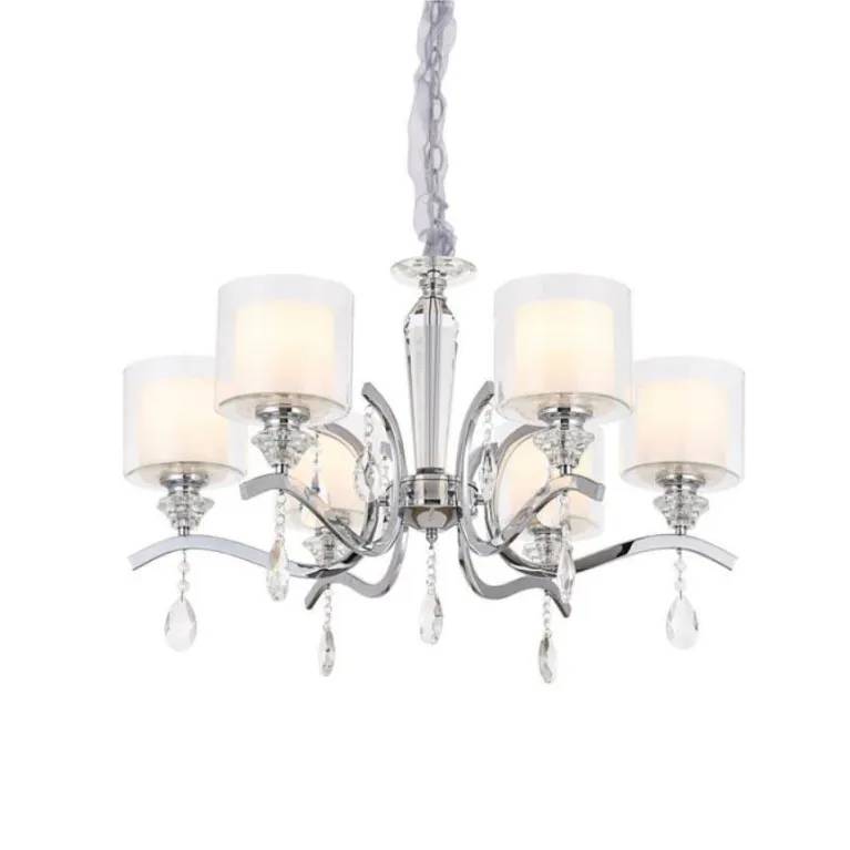 Люстра оснащена шестью источниками света с цоколем E14, что позволяет использовать как традиционные лампы накаливания, так и энергосберегающие или светодиодные лампы, обеспечивая максимальную гибкость в выборе освещения. Суммарная мощность ламп - 36 Вт, что создает яркое и равномерное освещение пространства.