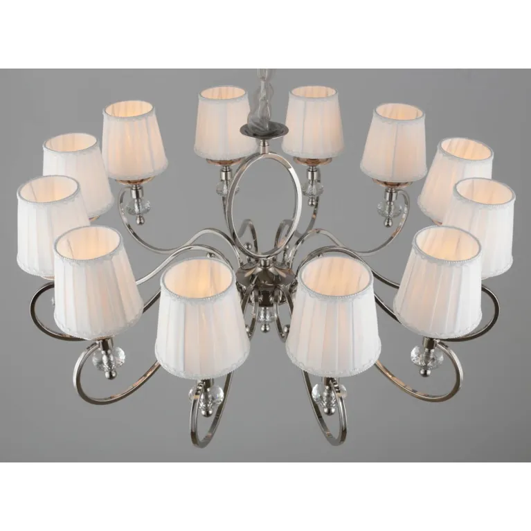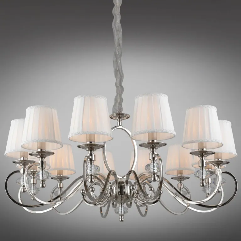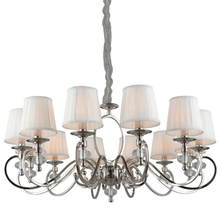 Эта люстра оснащена двенадцатью лампами, что обеспечивает яркое и равномерное освещение. Она выполнена в изысканном золотом цвете, который прекрасно гармонирует с различными стилями интерьера, от классики до модерна. Основание изготовлено из прочного металла, что гарантирует долговечность и надежность конструкции.