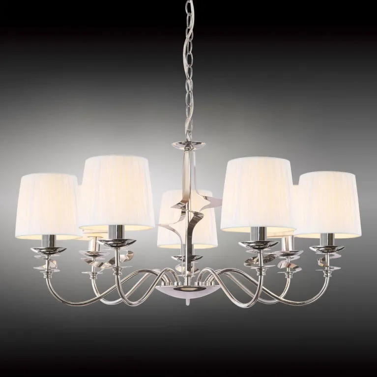 Вес люстры составляет 4,3 кг, что гарантирует её стабильность и безопасность в использовании. Ее компактные размеры (высота 400 мм, диаметр 500 мм) делают её подходящим выбором для небольших комнат, таких как гостиная, столовая или спальня.