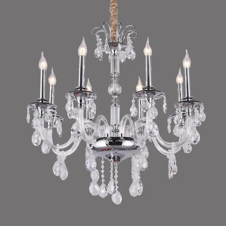 Люстра оснащена восемью патронами для ламп типа E14 и подходит для использования как традиционных, так и энергосберегающих или светодиодных ламп мощностью до 40 Вт. Такое разнообразие позволяет создать комфортное и яркое освещение в гостиной, столовой или спальне.