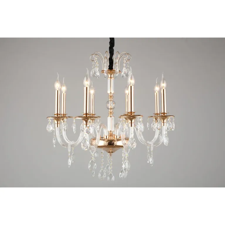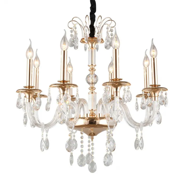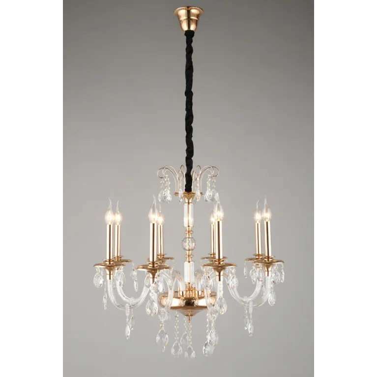 Люстра оснащена восемью лампами, которые обеспечивают яркое и равномерное освещение. Патрон E14 позволяет использовать как традиционные лампы накаливания, так и энергосберегающие или светодиодные лампы, что предоставляет максимальную гибкость в выборе источников света.